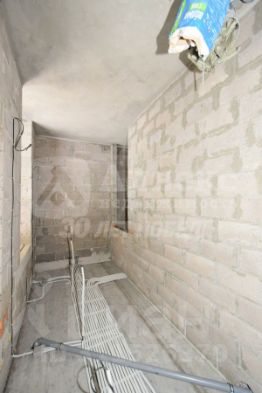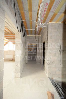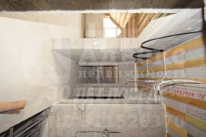 Дом имеет функциональную планировку и находится в черновой отделке. Стены выполнены из керамзитоблоков, утеплитель — пеноплекс, а фасад облицован кирпичом. Фундамент представляет собой монолитную плиту с двойным армированием. Кровля — деревянная стропильная с утеплением, покрыта гибкой черепицей. Входная дверь с терморазрывом. Канализация осуществляется через переливной септик, центральный водопровод и газ заведены на участок.