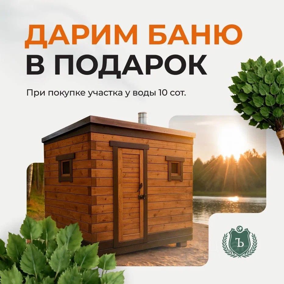-Бесплатная баня в подарок, при покупке участка у воды площадью 10 соток