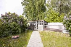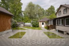 Участок ухожен и радует глаз: здесь растут плодовые деревья груши и яблони, а также есть баня и уютная беседка для отдыха с семьей и друзьями. Двор выложен брусчаткой, что придаёт участку стильный и аккуратный вид.