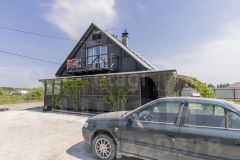 Дом двухэтажный: 1й этаж арболит блок, 2й этаж деревянный каркасник.