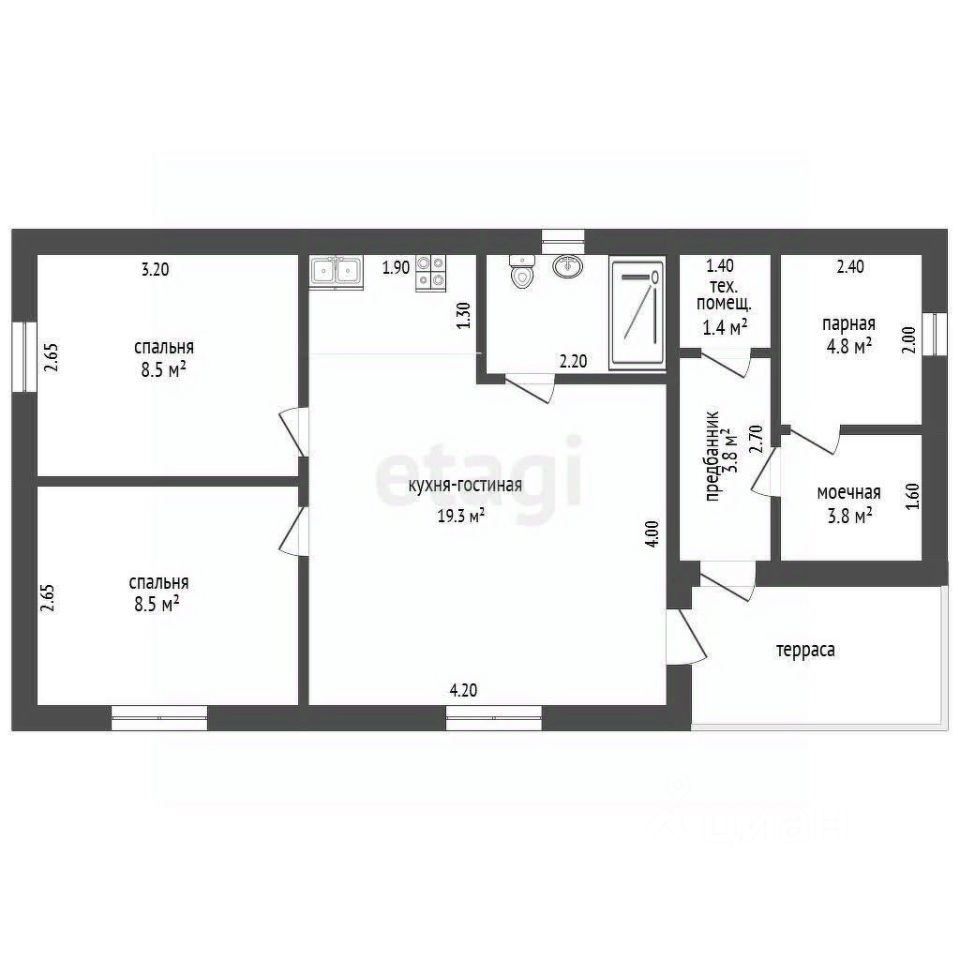 Просторная светлая кухня-гостиная станет сердцем вашего дома, а две изолированные спальни обеспечат уединение для каждого члена семьи.