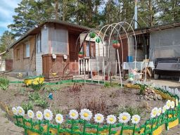 Шикарная дача, на участке 10 соток, домик, пригоден для круглогодичного проживания. Кухня и две изолированные комнаты, отопление житкостное, батареи, котел твёрдого горния с возможностью отопления электричеством, отработанным маслом, и подключения газа. Баня, с летней кухней, гараж, туалет, со двора выход в живописный лес, где можно установить беседку. Номер предложения: 40686.