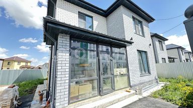 Дом двухэтажный 131 кв. метров с застекленной входной группой и террасой, расположен на участке 5 сотах ИЖС.