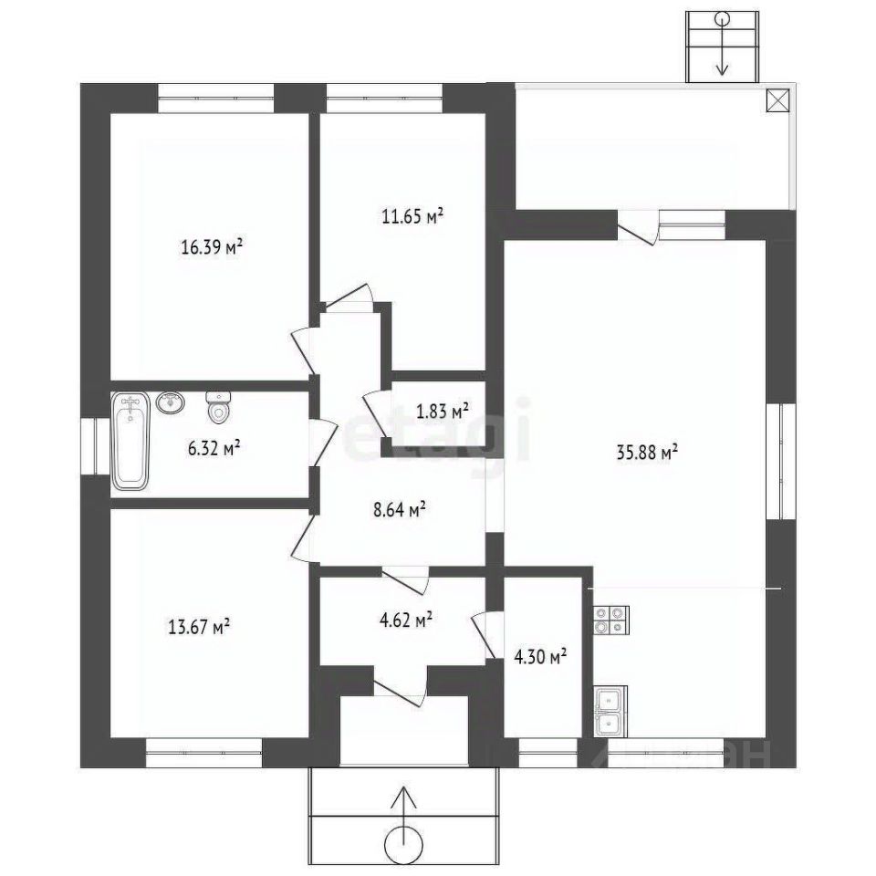При входе в дом просторная прихожая с выделенным местом под шкаф. Большая кухня-гостиная (35 кв.м.) имеет планировку которая позволяет отлично зонировать пространство на зону приготовления и зону отдыха. Панорамное остекление с выходом на террасу.