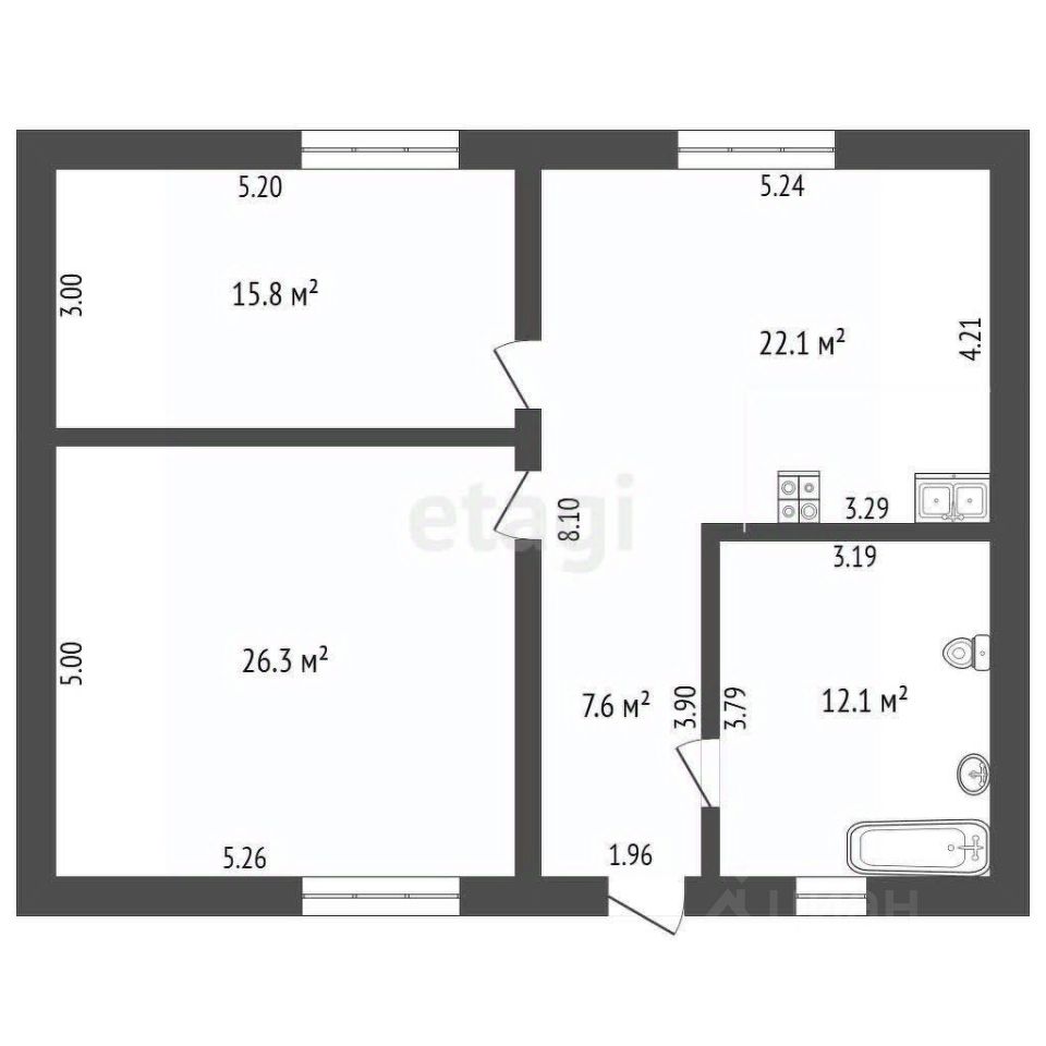 Планировка: кухня-гостиная, две изолированные комнаты, котельная и большой санузел совмещены.