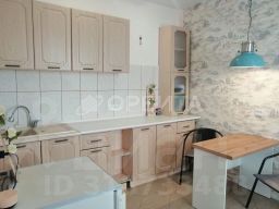 В коридоре встроенный вместительный угловой шкаф до потолка, на кухне - кухонный гарнитур с техникой.