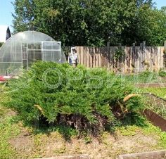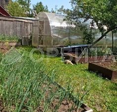 На участке есть две теплицы. Есть насаждения как декоративные, так и плодово-ягодные.