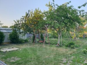 На территории кирпичный гараж размером 134 м с погребом, контейнер для сарая, надворный туалет и теплица 73 м.
