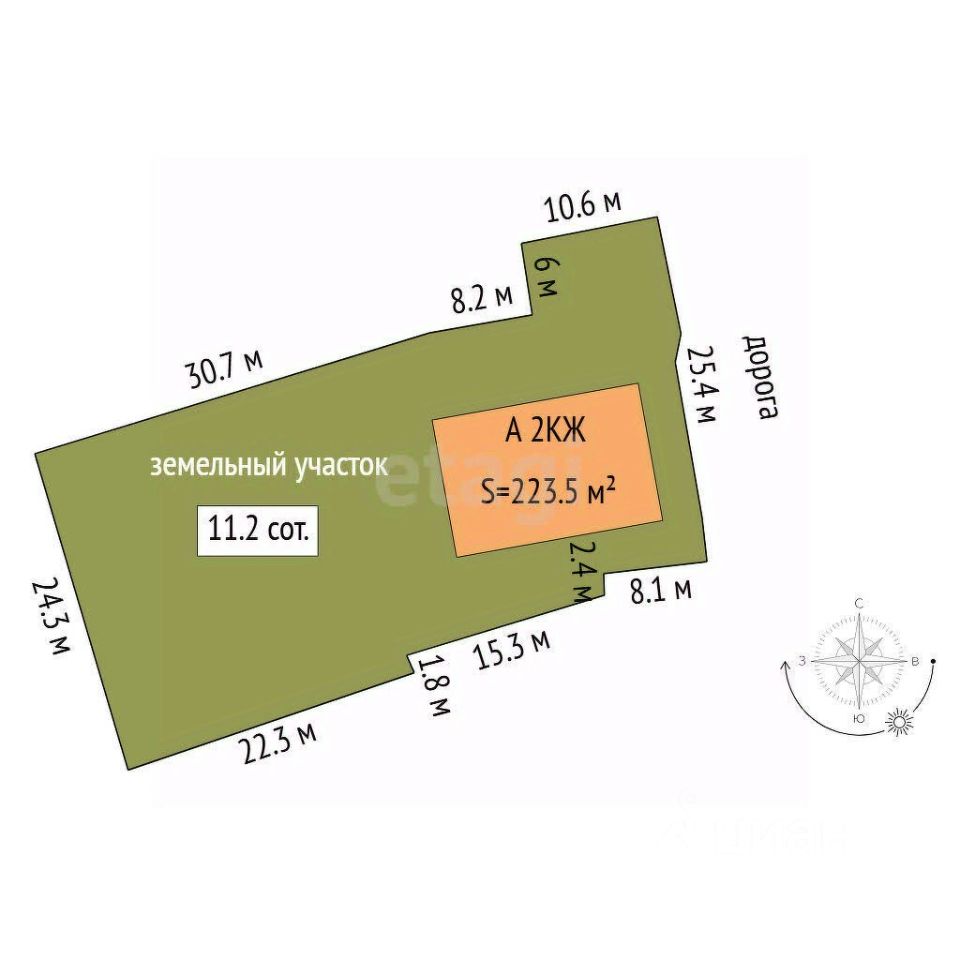 Дом расположен в удобном месте всего в 10 минутах ходьбы от центра поселка. В шаговой доступности находятся школы, детские сады и поликлиника.