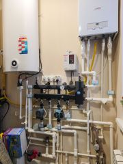 Дом отапливается газовым котлом, с водяными теплыми полами на первом этаже и радиаторами на втором, что создает уютную атмосферу в холодное время года. Участок площадью 6 соток огорожен профнастилом и частично обработан: здесь растут плодовые деревья, есть грядки, газон и теплица для любителей садоводства.