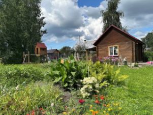 • Плодородная земля: Обработанная, с плодовыми насаждениями (яблони, груша, слива, вишня), кустарниками (смородина, крыжовник, жимолость), теплица.