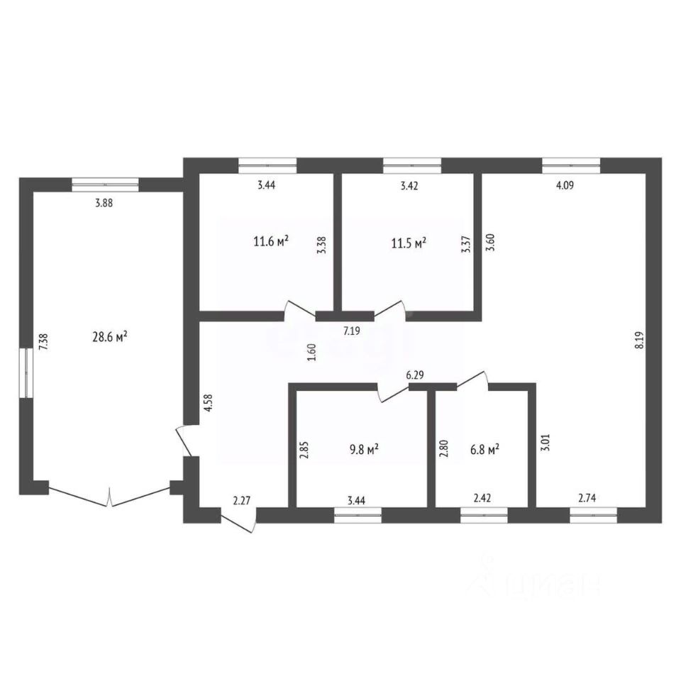 Планировочным решением предусмотрена кухня-гостиная, три изолированные комнаты, котельная и совмещенный санузел.
