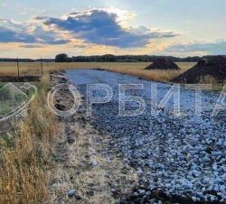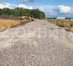 Дорога щебень с водоотводными канавами и придомовой территорией. Ширина дорожного полотна 6 метров.