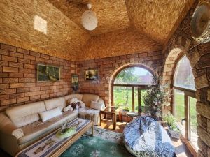 Второй этаж (100 кв.м.): гардеробная, просторный холл с прекрасным видом на сад и лес, гостиная с камином, кухня, комната, санузел на этаже.