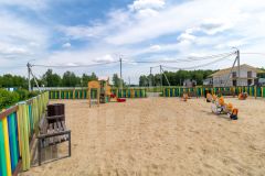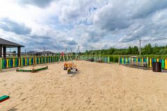 Огороженная территория с металлическим забором создает ощущение уединения и безопасности.