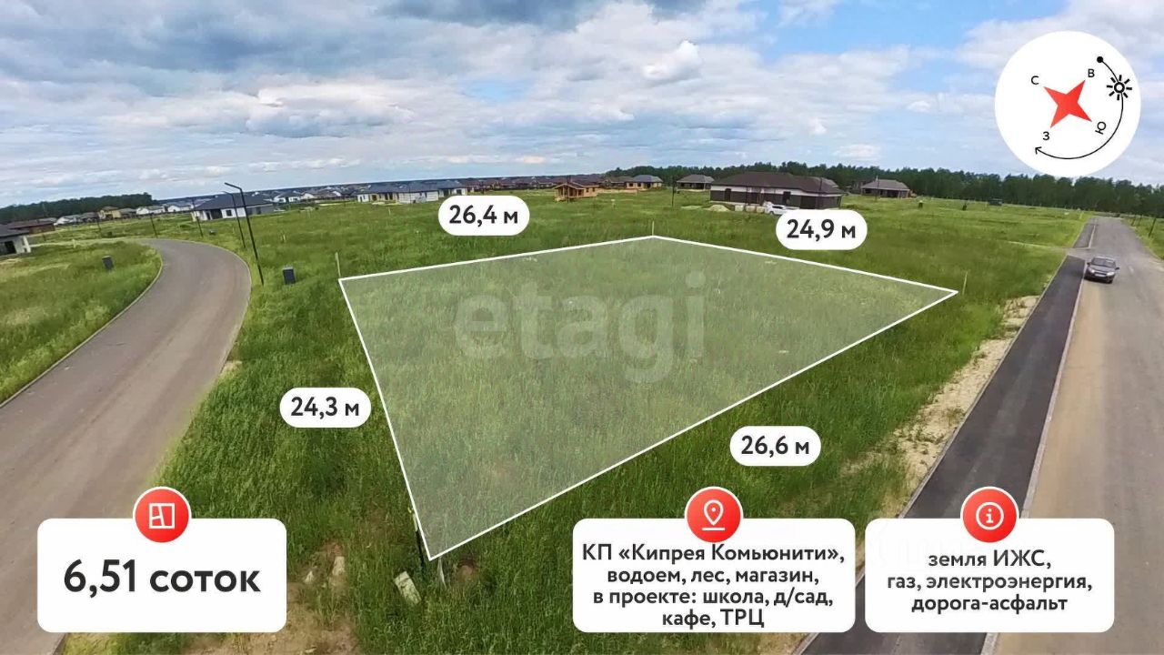 В рамках проекта представлены различные форматы недвижимости — от квартир и таунхаусов до земельных участков под индивидуальное строительство и резиденций премиум-класса. КИПРЕЯ.Комьюнити Участки — это семь тематических районов, каждый из которых спроектирован вокруг центрального парка с радиальной планировкой улиц. Все участки обеспечены инженерными коммуникациями: подведены газ, электричество и центральный водопровод, что значительно упрощает процесс строительства и заселения.