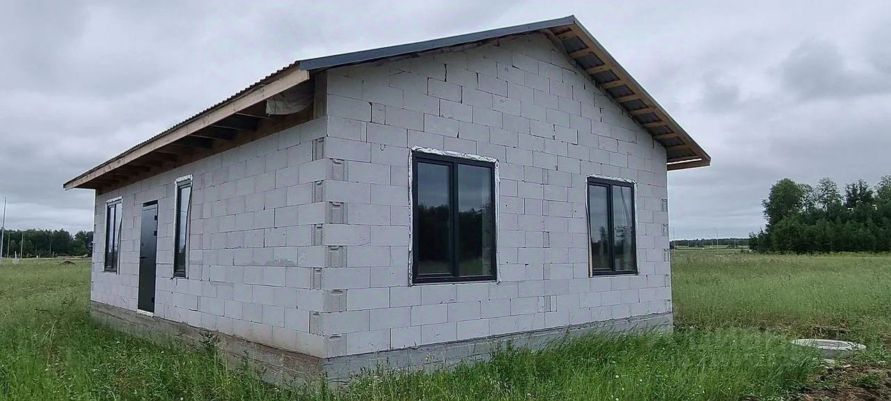 Основная дорога в котеджном поселке -асфальтовая срезка,у дома щебень с песком. электричество есть уже стоят щитки, в них проводят так же интернет и на дороге стоят подключенные фонари. Коммуникации под землёй. Выведен стояк газа. Очень красивая природа. В доме: Армопояс. Стены газоблок ПОРЕВИТ 300, перегородки ПОРЕВИТ 150. Потолки утеплены минватой. Кровля профлист толщина 0,7мм.цвет графит. Подушка утепленная пенопластом. Пробурена скважина выведена в дом в котельную. Вода чистая. Канализация выведена на кухню- столовую, туалет и ванную. Септик 2 колодца по 4,5метра каждый. Фундамент заливался в сентябре, как и ставились стены-так же всё в тёплую погоду. Тройной стеклопакет. Окна и входная группа цвета графит, как и кровля. У входной группы открываются обе створки, без перемычки.