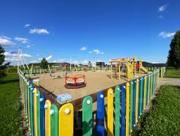Коттеджный посёлок расположен в окружении леса, на территории есть своё озеро. Установлены детские и спортивные площадки, зона для выгула собак, пляж и места для отдыха.