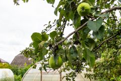 Плодоносят яблони (несколько сортов), облепиха, черноплодная рябина, жимолость, малина, крыжовник, красная и чёрная смородина,