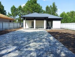 Дом формaтa 2, современная архитектура, качественные и надежные материалы. Фундамент - плита, стены керамзитоблок на 300-, утепленный фасад. Вода из скважины, электро отопление (современный котел, теплый пол), переливной септик. Отличная планировка: прихожая, котельная, с/у, кухня гостиная и две комнаты. Панорамные окна, просторная терраса, огромная мощеная площадка для любых идей времяпровождения.