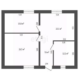 - Кухня-гостиная, две спальни, котельная с санузлом.