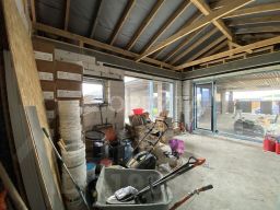 Большой навес для парковки и крытая терраса с качелями комфорт в любую погоду