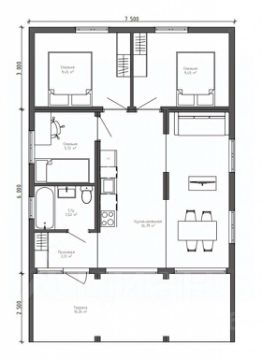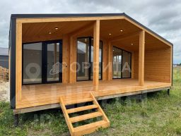 Три спальных комнаты и большая кухня-гостиная разместит семью с несколькими детьми. Большая крытая терраса подарит уютные вечера на природе.