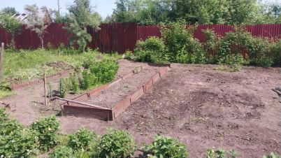 -Земля обработанная: площадь под картошку 3сотки, сад с плодоносными деревьями(Яблоня, сливы, вишня, черноплодка, малина, ерга, красная черемуха, жимолость, смородина черная) и газонной травой. Грядки с клубникой. Множество цветов. Так же на участке растут 4 высоких красивых ели. В 30 метрах грибной лес. Имеется фундамент от старого дома, можно доработать и поставить на нем новый(Дом с баней сгорели, горелки еще не убрали,можно использовать как дрова).