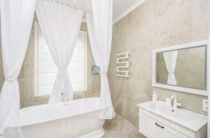 Шикарный, новый ремонт в основном доме в спокойных, нейтральных тонах, выполнен таким образом, его можно дополнить и развить в любом направлении, который близок новым хозяевам, а можно оставить в таком готовом, классическом стиле. вся мебель, домашний текстиль и предметы интерьера, подобраны идеально. Лестница на второй этаж, ступени- ясень