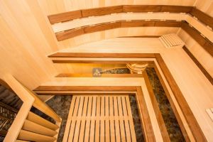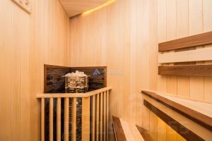 В доме нет бесполезных площадей, все квадраты правильно распланированы: холл-парадная для праздников, гардеробные, кухня и столовая, четыре спальни и спальня для хозяев с ванной и санузлом, сауна с зоной отдыха, хоз. комната и зимний сад, четыре санузла.