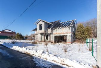 На участке имеется недостроенный дом. Возможны варианты: снос перед продажей (обсуждается) или достройка покупателем.