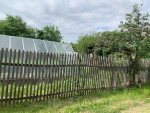 На участке 4 сот расположен деревянный дом с печкой, баня, теплица. Внутри уютно и чисто. На участке выращены яблони, вишня, малины. Урожая очень много! Вода центральная, рядом с участком есть колонка.