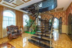 На втором этаже: лестница изготовлена из дуба, на полу качественный паркет, что говорит об экологичности и долговечности. Спальня 31 кв.м. с выходом в гардеробную , кабинет 18.7 кв.м. холл 62.5 кв.м.
