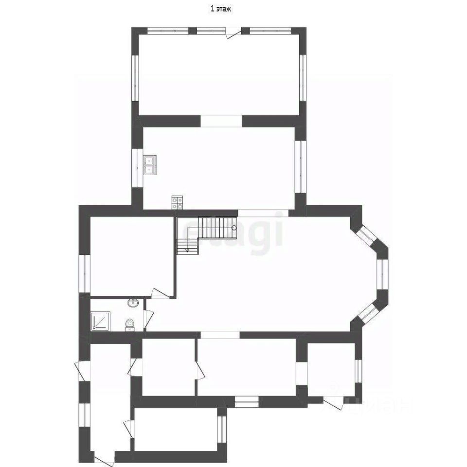 В доме 5 комнат, на первом этаже расположены просторная кухня-гостиная, застекленная терраса, кабинет или гостевая комната, санузел.
