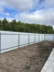 По периметру установлен забор и кованые ворота, участок отсыпан щебнем.