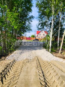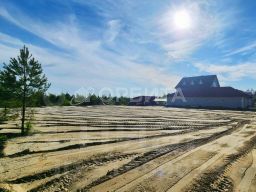 Подведены все коммуникации, сделан заезд. Участок отсыпан, поднят и разровнен. По фасаду отгорожен от дороги красивыми берёзами, по задней части растут сосны. Можно оборудовать тропинку прямо до берега.