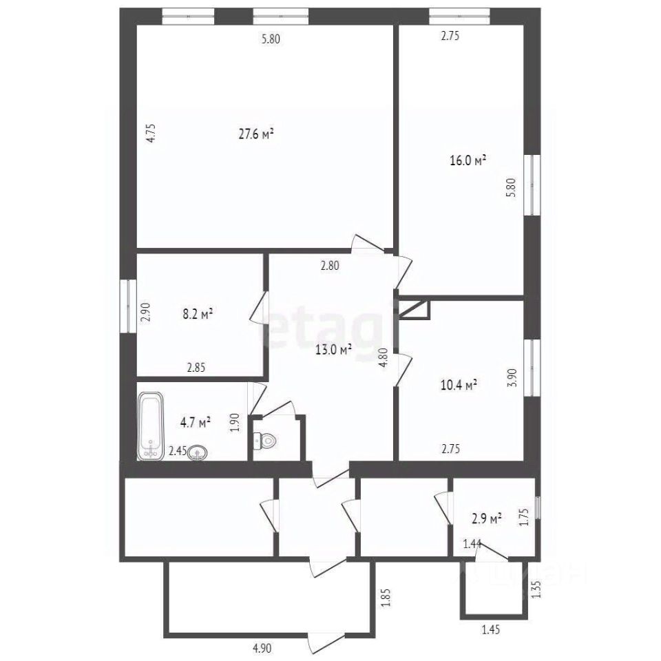 Планировка: 3 спальные комнаты, кухня-гостиная, раздельный санузел, прихожая.