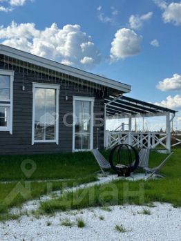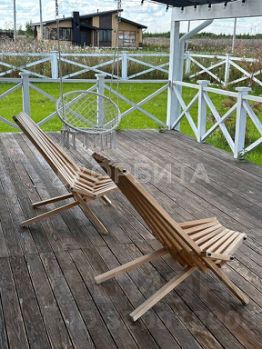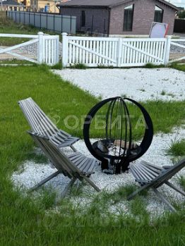 Дизайнерский ландшафт: травяной газон, костровая зона, качели.