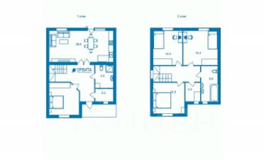 4 комнаты, кухня-гостиная, 2 санузла, котельная.