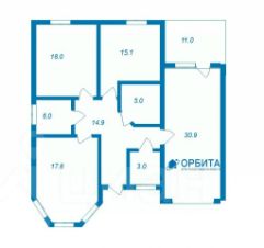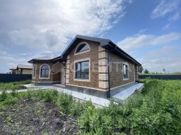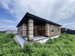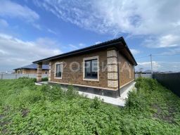 Дом формата 3+. Три спальни скомпонованы в одной части дома, кухня-гостиная - в другой. По проекту по центру дома расположен большой санузел, также есть вместительная гардеробная, крытая терраса.