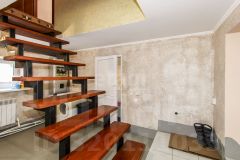 Трехэтажная структура (первый этаж нежилой, цокольный) выполнена из качественных материалов: цоколь — кирпичный, а 1 и 2 этажи — из бруса 150*180 мм. Уют и тепло обеспечивают надежная теплоизоляция и современное газовое отопление, дополненное электрическим и дровяным котлами. Все коммуникации централизованные: газ, вода и канализация, а также электричество 380 Вт.