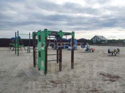 Рядом расположены детская площадка, семейные соседи, школа с автобусом и остановка общественного транспорта — всё в шаговой доступности. Въезд на территорию осуществляется через шлагбаум, что обеспечивает дополнительную безопасность.