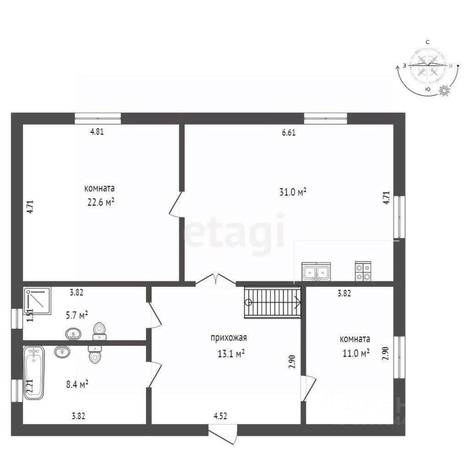 Дом состоит из двух этажей. На первом этаже вас ждут: светлая спальня 11 м², просторная кухня-гостиная 31,1 м² в которой вы можете собраться большой семьёй или компанией друзей, уютная детская комната 22,6 м², а также ванная 6,4 м² и туалет 5,7 м². Второй этаж с площадью 101,3 м² имеет свободную планировку, что позволяет вам организовать пространство по своему вкусу — будь то кабинет или игровая зона для детей.