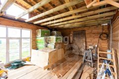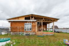 Строительство выполнено на надежном ленточном фундаменте, крыша утеплена минеральной ватой и покрыта мягкой кровлей. В доме предусмотрен подвал высотой 1 м с тремя входами, где размещены коммуникации и система очистки воды - это позволяет рационально использовать площадь дома. Вода подается из скважины глубиной 32 м, а также имеется колодец для полива что позволяет сократить коммунальные платежи. Канализация представлена переливным септиком объемом 6 м. Отопление осуществляется с помощью электрокотла (15 кВт) с разводкой "теплый пол" в детской, спальне и кухне-гостиной.