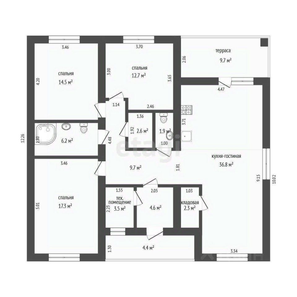 В доме предусмотрены две комфортные детские комнаты и одна просторная спальня площадью 17,3 м², что обеспечит каждому члену семьи свое личное пространство. Также к вашим услугам кладовая и постирочная, что делает повседневную жизнь еще более удобной и комфортной. Этот дом идеально подойдет для семьи из 4-5 человек, которые ценят уют и комфорт.