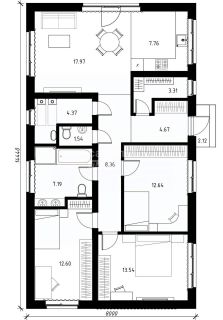 Функциональная планировка: просторная кухня-гостиная с витражным выходом на террасу, прихожая, котельная, два санузла, три спальни.