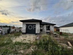 Просторный дом в предчистовой отделке с гаражом в закрытом коттеджном поселке "Елки" Стены газобетон, облицовка силикатный кирпич,заведен газ,электричество,теплый пол во всем доме,скважина в гараже ,септик 6 кубов.Установлен забор и ворота.
