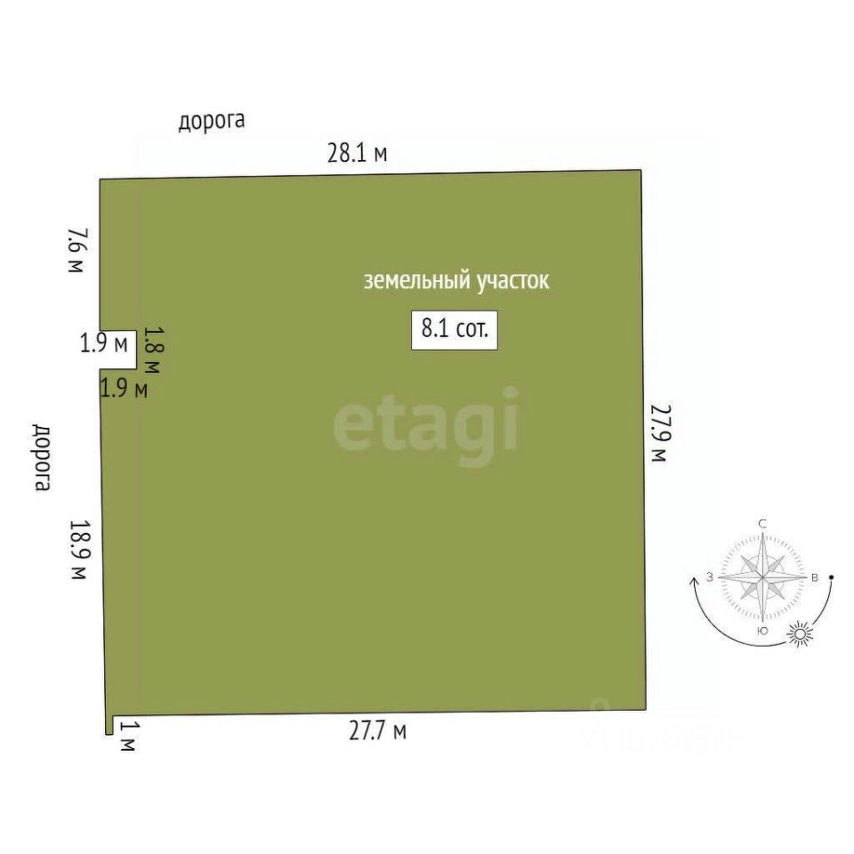 Участок правильной формы, 8 соток. По всему периметру огорожен забором из профнастила. Назначение земли - ИЖС.