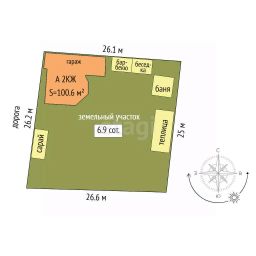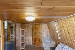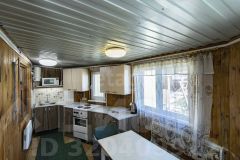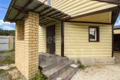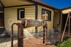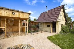 Дом, площадью 100,6 кв.м., построен из бруса, снаружи обшит сайдингом, внутри-вагонка, фундамент ленточного типа, кровля двускатная металлочерепица(на крыше есть чердачное помещение). В дом заведено водоснабжение, горячая вода из бойлера, для холодной воды накопительный бак 0,5 кб метров, насос для подачи воды из скважины.