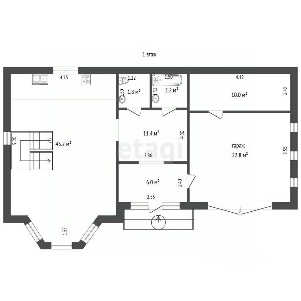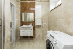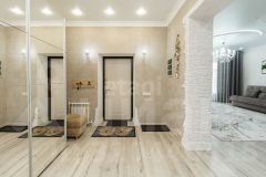 На первом этаже вас встречает просторная и уютная кухня-гостиная площадью 44 м² с теплым полом. Также на этом уровне расположены гостевой санузел и удобная комната для хозяйственных нужд. Просторная прихожая оборудована вместительным шкафом-купе. Выход в теплый гараж с погребом площадью 10 м² — это дополнительный плюс для хранения ваших запасов.